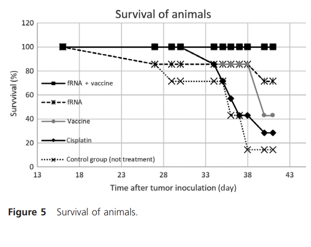The use of a combined treatment method (Antisense microRNA and phagocyto-tropic liposomes) resulted in a 100% survival rate in mice with Lewis carcinoma.
